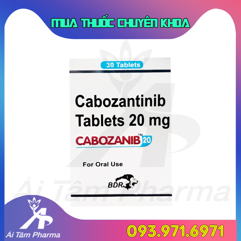 - Thuốc CABOZANIB 20mg (Cabozantinib) được nghiên cứu và sản xuất bởi các chuyên gia của hãng dược BDR Ấn Độ đây là hãng dược phẩm lớn trên thế giới, cung cấp các thuốc biệt dược điều trị bệnh hiệu quả