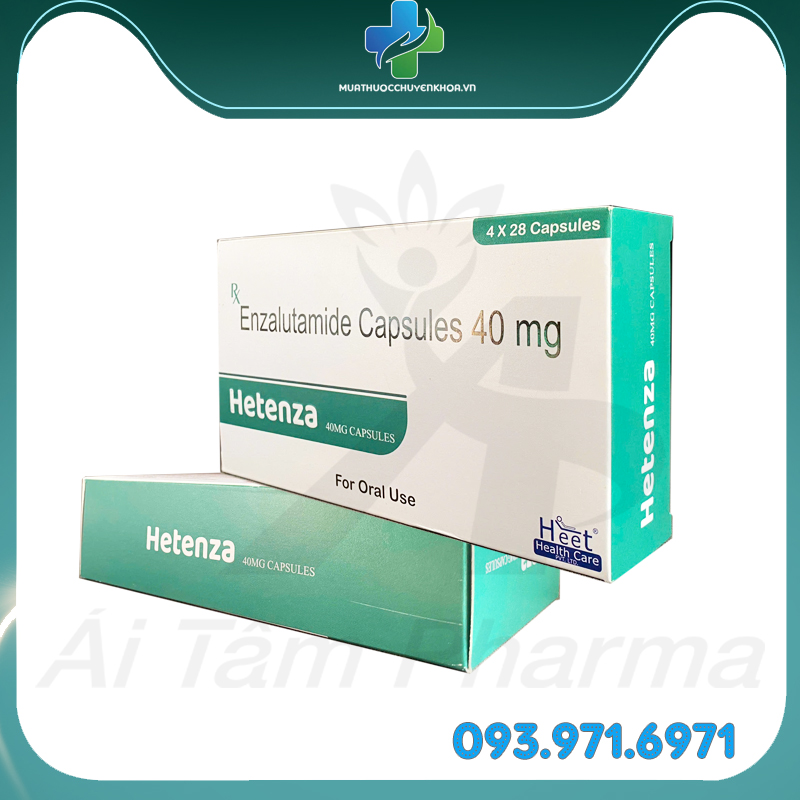 - Thuốc Hetenza 40mg (Enzalutamide) được nghiên cứu và sản xuất bởi các chuyên gia của hãng dược Aprazer Ấn Độ đây là hãng dược phẩm lớn trên thế giới, cung cấp các thuốc biệt dược điều trị bệnh hiệu quả
