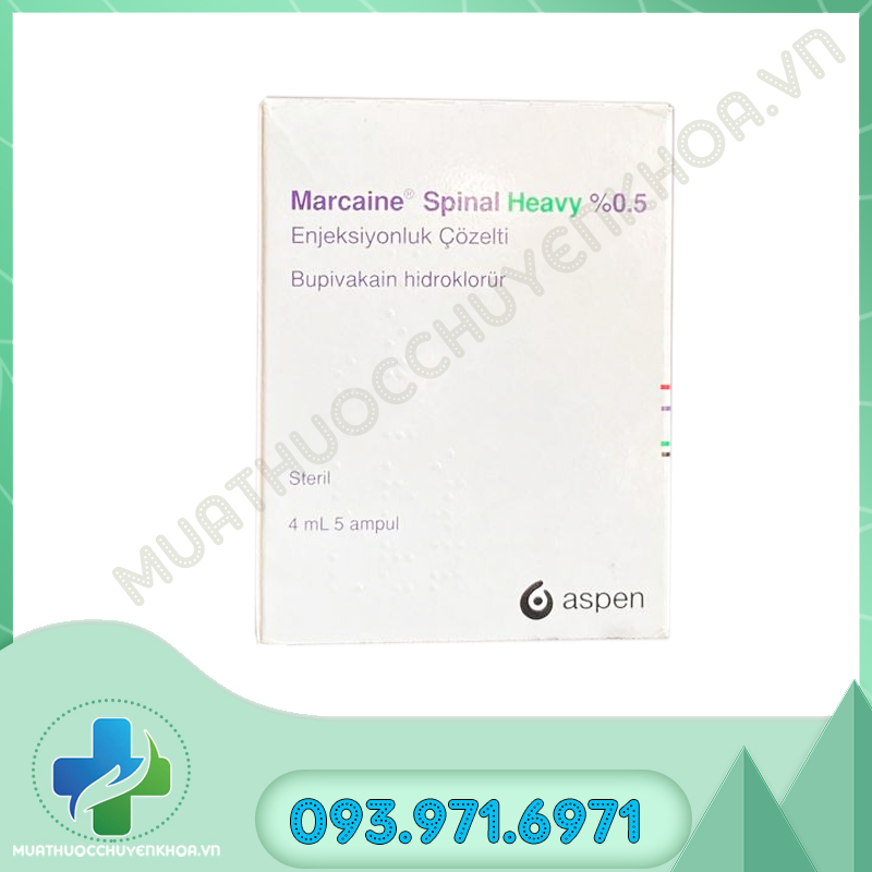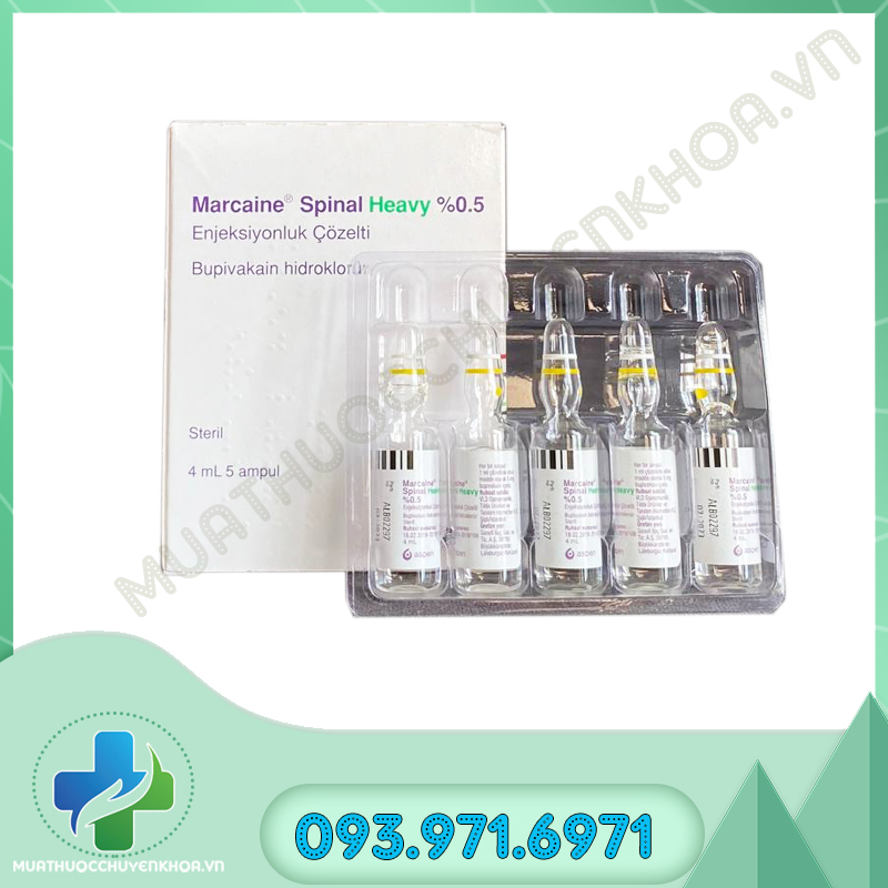 - Thuốc Marcaine Spinal Heavy 0.5% (Bupivacain) một chất có tác dụng ức chế các xung động thần kinh dẫn truyền cảm giác đau tới não bộ.