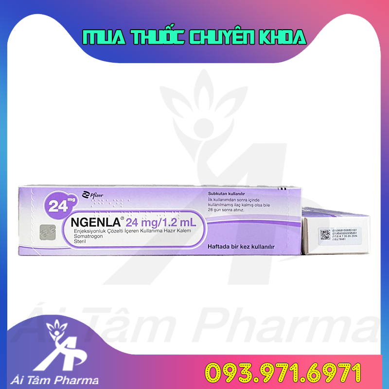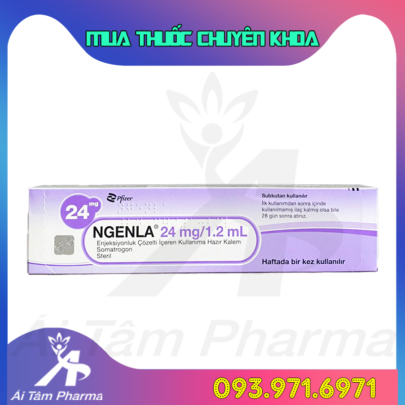 - Thuốc NGENLA 24mg/1.2mL (Somatrogon) được nghiên cứu và sản xuất bởi các chuyên gia của hãng dược Pfizer Thổ Nhĩ Kỳ đây là hãng dược phẩm lớn trên thế giới, cung cấp các thuốc biệt dược điều trị bệnh hiệu quả