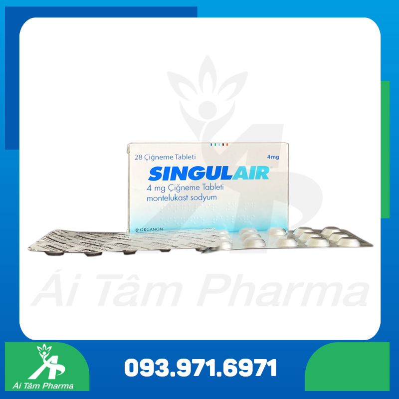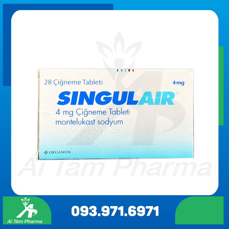 - Thuốc SINGULAIR 4mg (Montelukast) được nghiên cứu và phân phối bởi các chuyên gia của hãng dược phẩm ORGANON Pharma đây là hãng dược phẩm lớn trên thế giới, cung cấp các thuốc biệt dược điều trị bệnh hiệu quả.