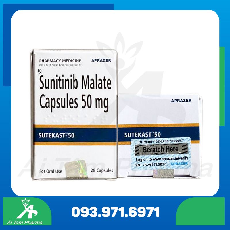 Quý khách hàng có nhu cầu mua thuốc SUTEKAST 50mg (Sunitinib) hoặc cần tư vấn vui lòng liên hệ Hotline 093.971.6971 hoặc để lại lời nhắn kèm số điện thoại chúng tôi sẽ liên hệ và tư vấn cho quý khách hàng và bệnh nhân.