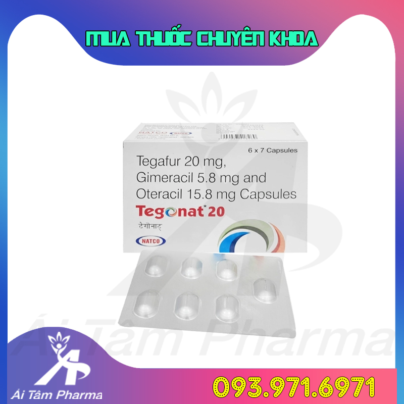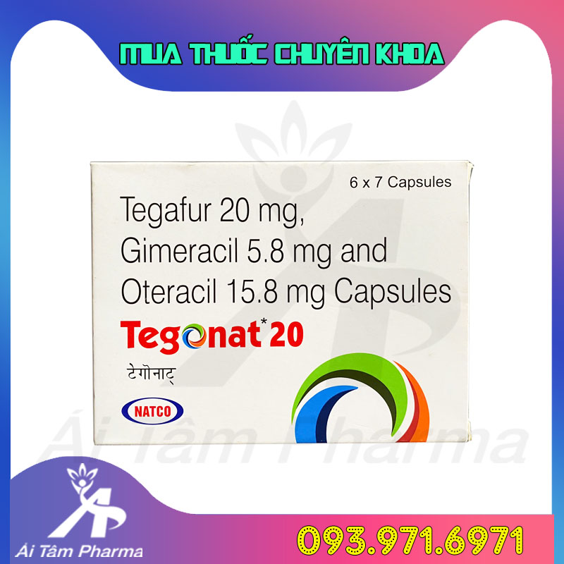 - Thuốc Tegonat 20mg là thuốc kê đơn được sử dụng kết hợp với các loại thuốc chống ung thư khác nhau để điều trị ung thư dạ dày và đại trực tràng tiến triển.